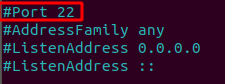 2- Retire o comentário ‘#’ antes de Port 22 e altere para a porta que deseja que seja utilizada. No exemplo abaixo foi aterada para a porta 8000, veja: