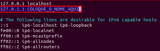 1- Coloque o nome desejado no arquivo hosts