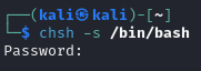 Para realizar a alteração do shell padrão para o bash com o comando chsh, execute: