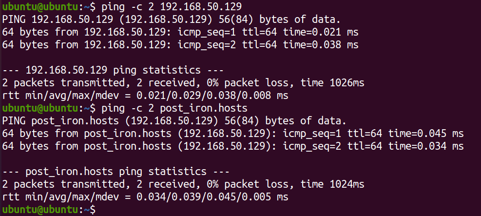 é possível ver que o IP respondia corretamente, ou seja, existia em minha rede, e após adição o hostname também respondeu, pois foi encontrado localmente, com isso ele não precisou utilizar a resolução de dns.