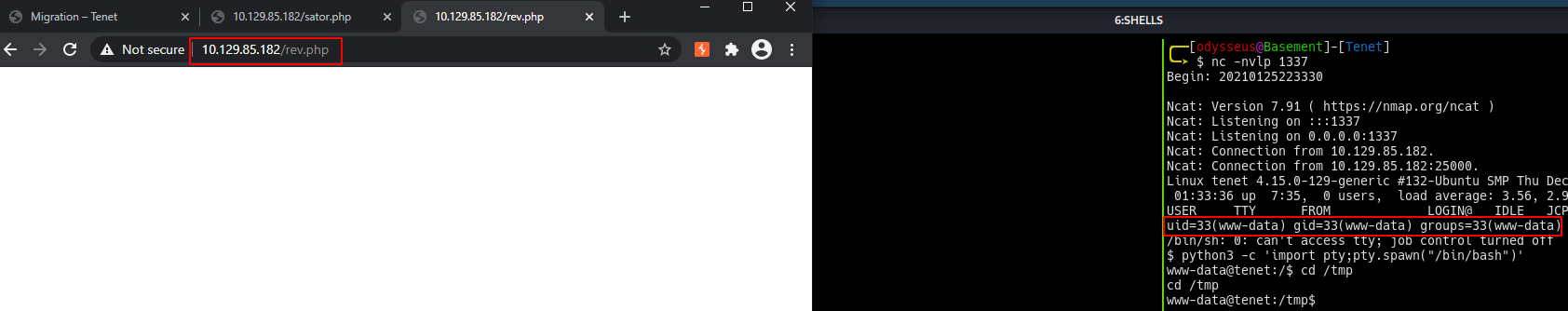 It was not possible to get the user flag with www-data permissions, but there was no need for lateral movement. Root access could be achieved directly from www-data.
