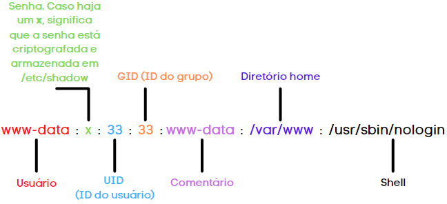 Contudo, a fim de entender o conteúdo do arquivo /etc/passwd, criamos a imagem abaixo: