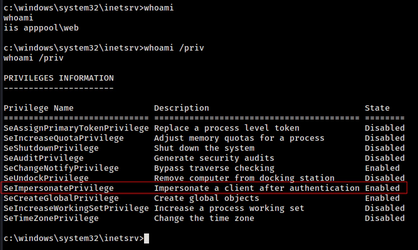 whoami /priv