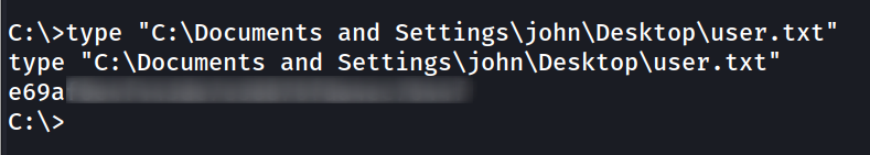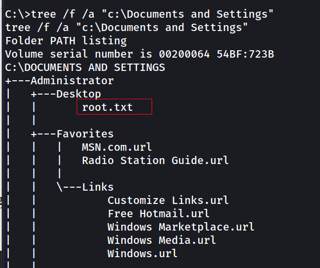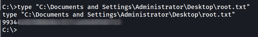 type "C:\Documents and Settings\Administrator\Desktop\root.txt"