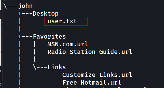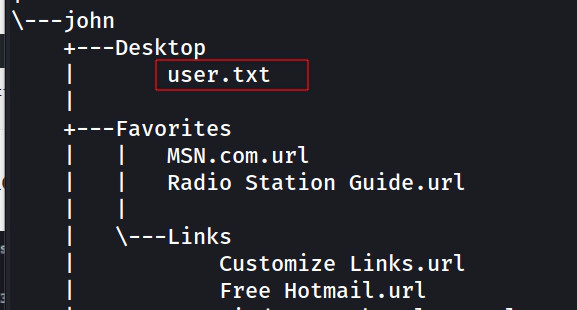 Agora que sabemos quais usuários estão ativos no sistema, o próximo passo é validar os diretórios do usuário “john” a fim de localizar a flag “user.txt”.