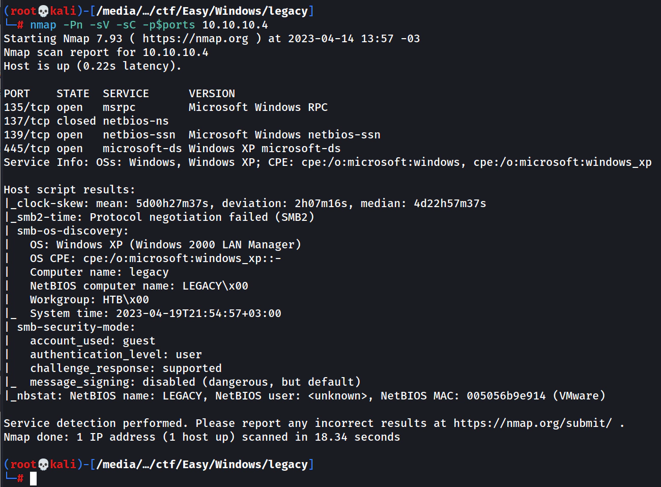 Link de acesso: https://app.hackthebox.com/machines/Legacy