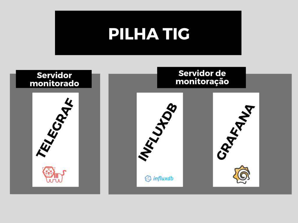 O nome da pilha que falaremos nesse post é TIG, formada pelos nossos três amigos acima. Tínhamos a opção de utilizar o Chronograf como dashboard e o Kapacitor para gerar alertas, porém o Grafana já faz tudo isso 😀