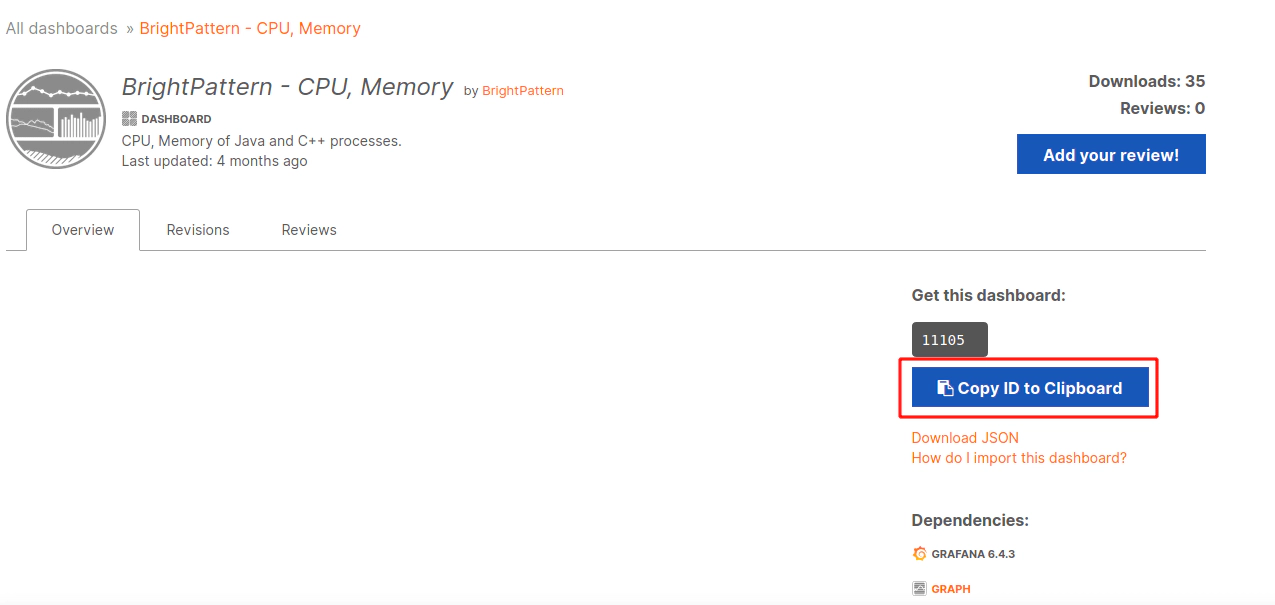 3- Clique em Copy ID no Dash escolhido. No meu exemplo eu escolhi o Dash abaixo criado por **BrughtPattern. **