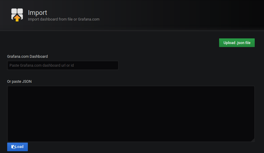 4- Voltando a página do nosso Grafana, vamos colocar o ID copiado em “Paste Grafana.com dashboard url or id” e clicar em LOAD