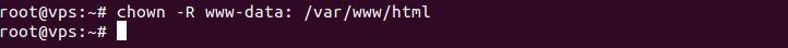 4- Para que nosso servidor Apache possa acessar o arquivo criado de teste, também precisamos conceder permissões apropriadas e definir o usuário e o grupo como www-data. Atualizamos as permissões para todo o diretório / var / www / html, com o seguinte comando: