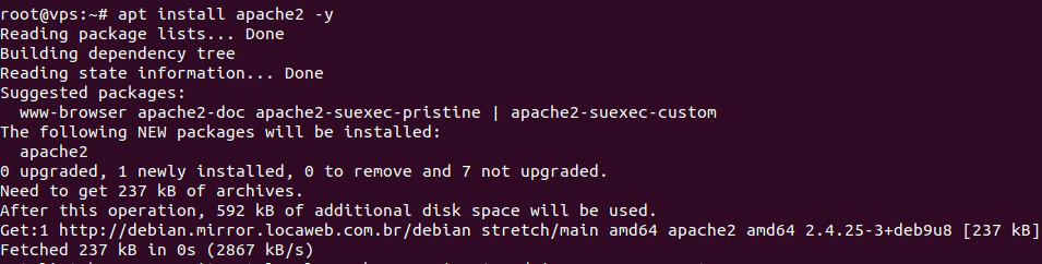 2- Caso o apache não esteja instalado, primeiramente realize a atualização de seus repositórios