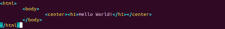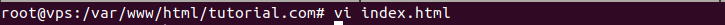 O ‘vi’ é o editor que estou usando neste exemplo, porém você pode utilizar o de sua preferência, como ‘vim’, ’nano’, ‘code’ e etc. Coloque o conteúdo de teste que desejar, neste exemplo criei um index.html com um Hello World